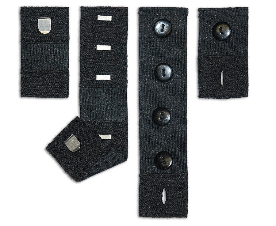 - 4 extenders included: 2 button extenders (large + small), and 2 hook extenders (large + small)