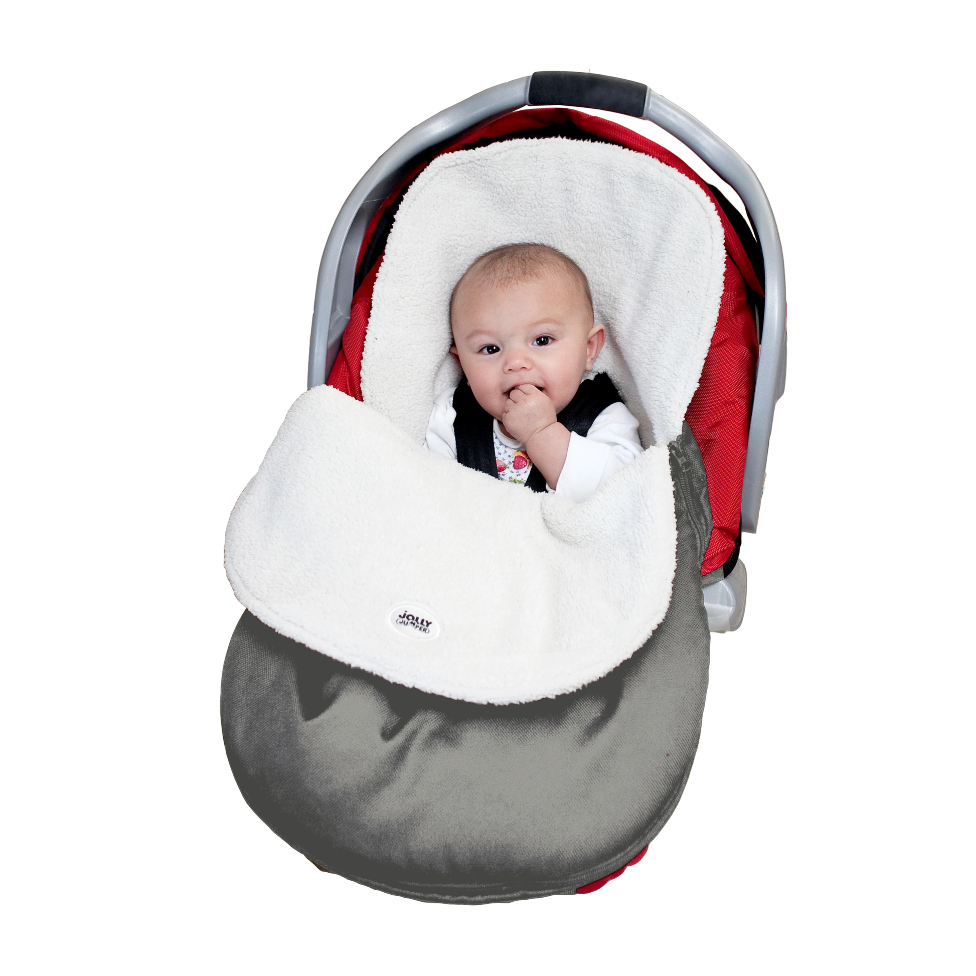 Jolly Jumper Cuddle Bag with Removable Cover makes traveling easier by eliminating the need for bulky outerwear and blankets. Baby is comfortably covered with soft fleece lining while the water resistant shell protects baby from the elements.