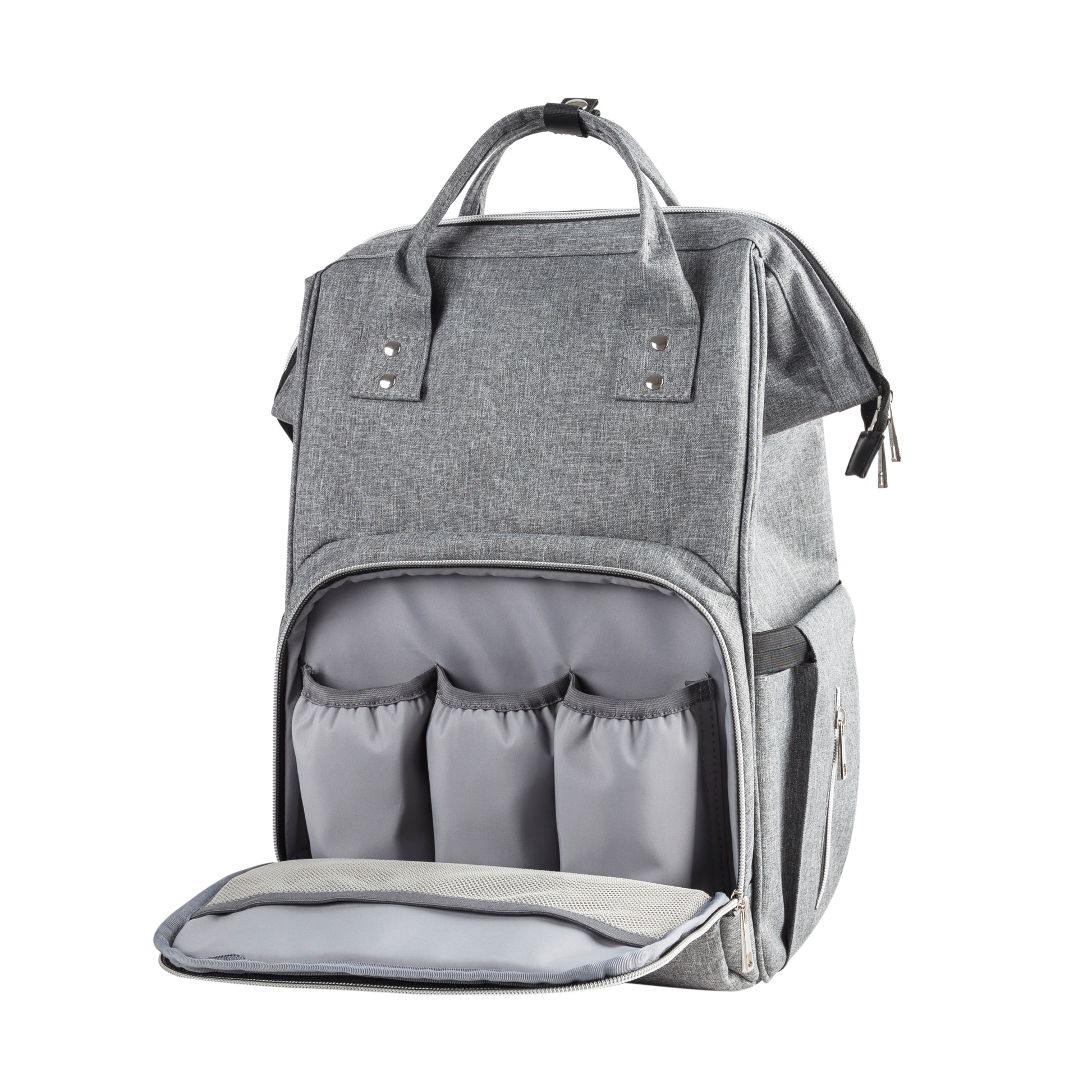 - Exterior zipper opens to 3 insulated bottle pockets